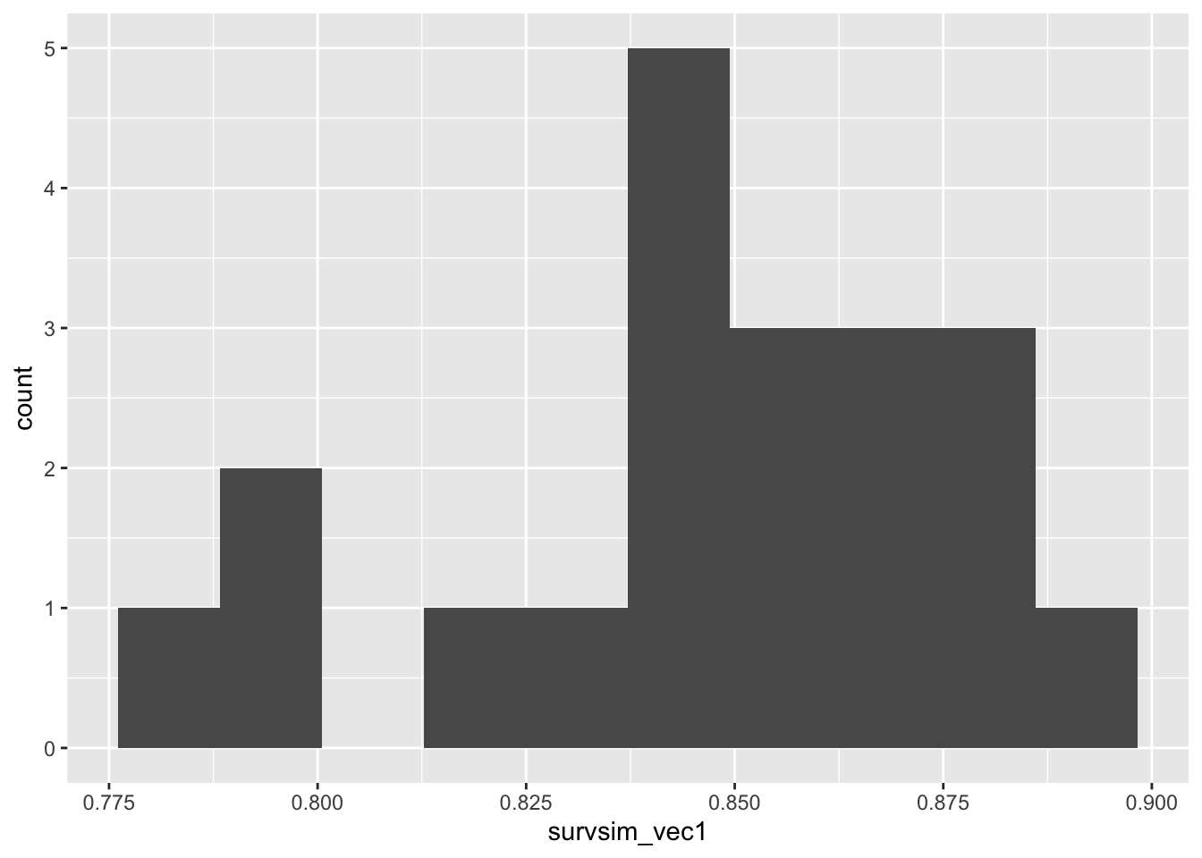 ggplot(mapping = aes(survsim_vec1)) + geom_histogram(bins=10)
